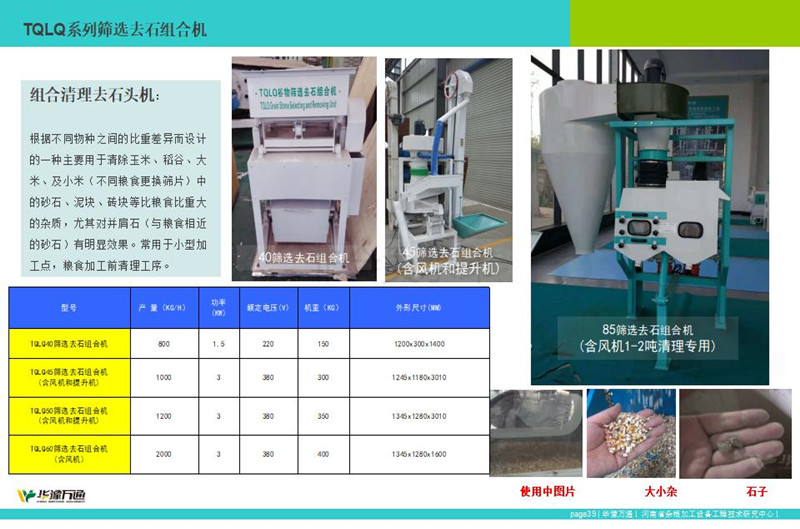 華豫萬通生產(chǎn)的TQLS系列組合清理去石機,該系列組合型清理去石機整合風機、振動篩、去石機為一體的糧食清理設(shè)備,常應(yīng)用于糧食加工中清理去除大中小雜、石頭以及輕雜。其中 TQLS-45型清理去石機常應(yīng)用1噸下糧食清理,而TQLS-85組合清理去石機,精工制作常應(yīng)用于30噸左右糧食加工生產(chǎn)線的前段清理工序。